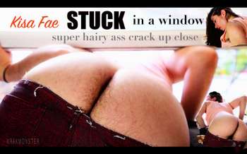 STUCK IN WINDOW with HAIRY ASS OUT : Kisa Fae close up