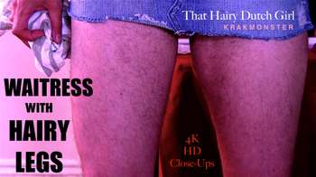 WAITRESS with HAIRY LEGS TRILOGY hairy nipples bounce out hairy UPSKIRT close up