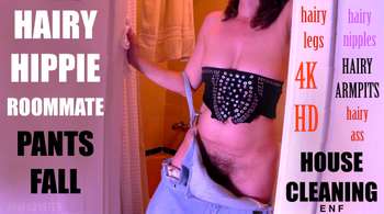 HAIRY HIPPIE ROOMMATE PANTS FALL housecleaning hairy body 4K close ups